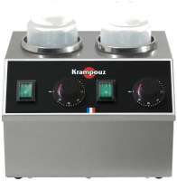 Ce chauffe-chocolat double permet d’accueillir deux bouteilles d’1 L munies d’un bouchon triple qui permet un dosage précis. Il est composé d’un thermostat réglable jusqu’à 90°C idéal pour adapter la température. Sa conception en inox assure sa robustesse et facilite le nettoyage.